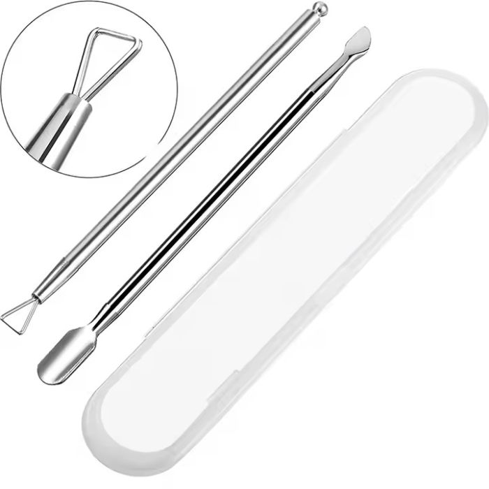 2 olika nagelverktyg, rengöring & nagelbands pusherDubbelsidigt nagelverktyg för rengöring av smuts under nageln samt för att trycka tillbaka nagelbandet så att nageln får växa fritt.
