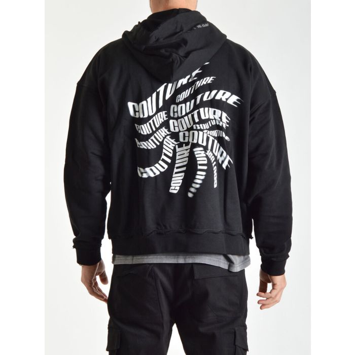 Svart hoodie från Couture Club. Relaxad passform. Detaljrik med sömmarna på utsidan, stort ryggtryck och litet reflextryck på luvan. Sydd i french terry.(På bild 187cm/86kg och strl L)