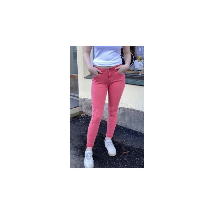 Snygg byxa i fin corallfärg, snygg till sommarens fina toppar och skjortor. Byxan är en tajt modell. Byxan har bra stretch.
