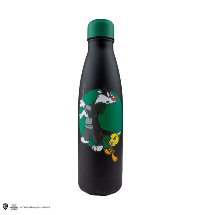 För att fira Warner Bros 100-årsjubileum har det tagits fram en kul kollektion av vattenflaskor i en mashup mellan Looney Tunes och Harry Potter! Den här flaskan pryds av Sylvester och Pip (Tweety Bird) som Slytherin-elever, iklädda sina Hogwarts elevuniformer.