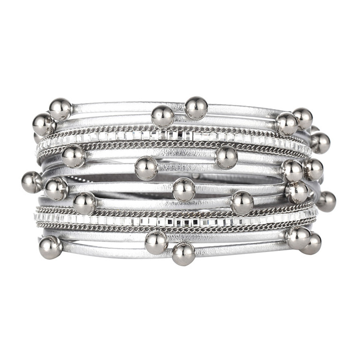 Material: PU-läder, Strass, SilverpärlorLängd: ca 39 cm (viras i två varv)Magnetlåsning