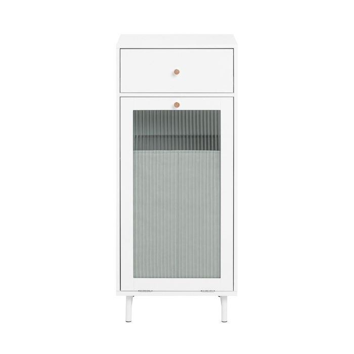 I förpackningen finns en låda och ett skåp med avtagbar tvättkorg som fullt ut kan utnyttja det begränsade utrymmet. Den smala designen gör att den kan placeras i mindre utrymme och sparar mer utrymme.