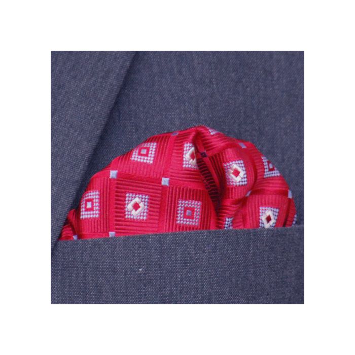 Bröstnäsduk i vävd siden. Röd bas