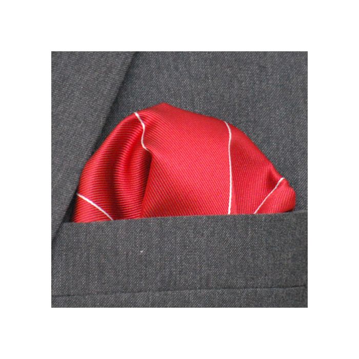 Röd bröstnäsduk med vita linjer i vävd polyester
