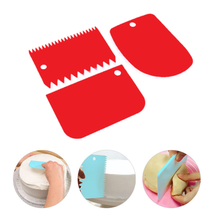 En bra hjälpreda under bullbaket eller till tårtan. Använd skrapan till att dela på degen och för att skrapa bort rester från arbetsbänken när du är klar. Används också till icing, smörkräm och frosting som gör att du enkelt får fina, släta tårtor. Vill du ha mönster så använd den taggiga skrapan.Mått ca 8,5cm x 12cmMaterial plast.