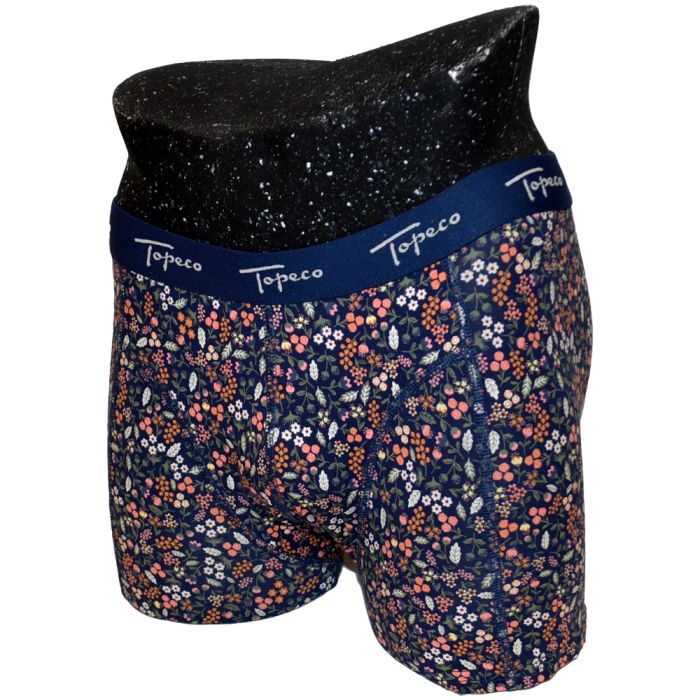 Herrboxer regular i 95% bomull och 5% elastan. Kalsonger i storlek S-XXL. Ingen gylf. Blommor på blå botten. Märke Topeco. Mängdrabatt vid köp av 2 par 279:-, 3 par 409:-, 4 par 529:-, 5 par 620:-. Blanda fritt utav våra herrboxers. Rabatten dras automatiskt i kassan.