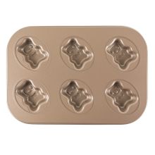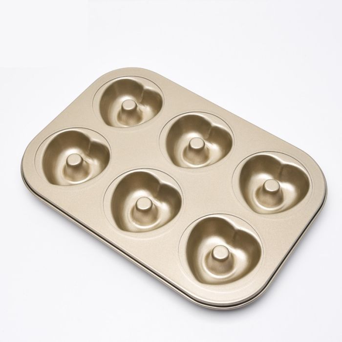 En plåt med plats för 6 st hjärtan. Smörj innan smeten hälls på med smör eller olja.Gjord i rostfri karbonstål. Tål temperatur upp till 220°C.Längd 26,5cmBredd 18,5cmHöjd ca 2cmVarje form har en diameter på ca 6cm