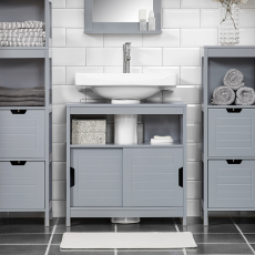 FRG237-DG Underskåp för Handfat, Badrumsskåp med Justerbara Hyllor, Fukttåliga Dörrar, Förvaringsskåp i MDF, 60 x 35 x 58 cm, Grå
