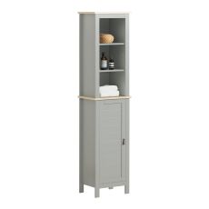 BZR34-II-HG Hög Badrumsförvaringsskåp – Fristående Smalt Badrumsskåp, Vattenresistent MDF med Justerbara Hyllor och Låda – Kompakt Badrumsmöbel, Grått, B20 x D20 x H180cm