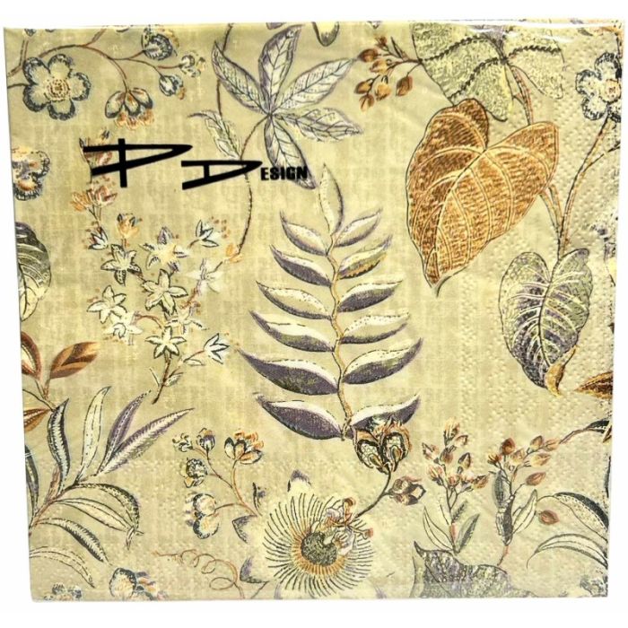 Vackra servetter i dova höstliga färger med motiv av växter och blommor. Underbara att duka med oavsett om det är till vardag eller fest.