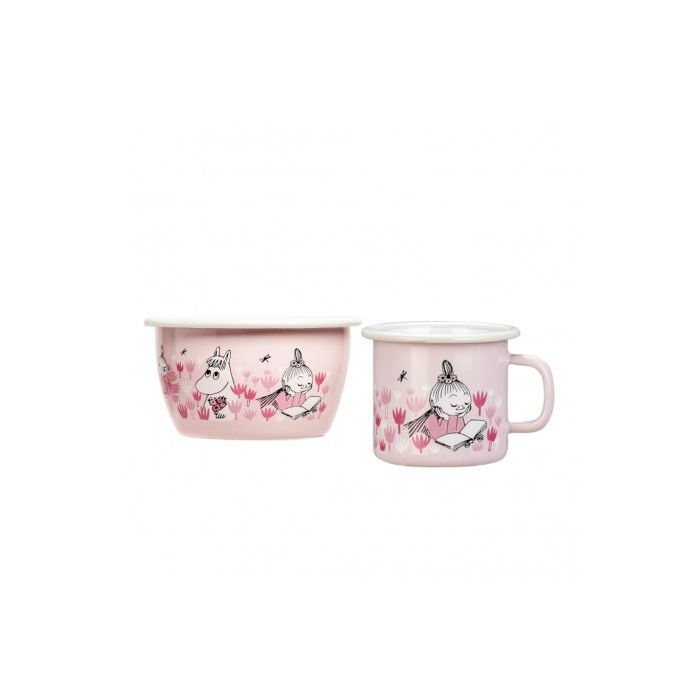 Set mumin flickor skål 3 dl och mugg 2.5 dl i emalj
