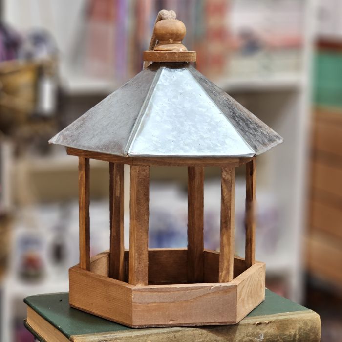 Fågelmatare i trä.Mått 17,5 x 17,5 x 18 cm.