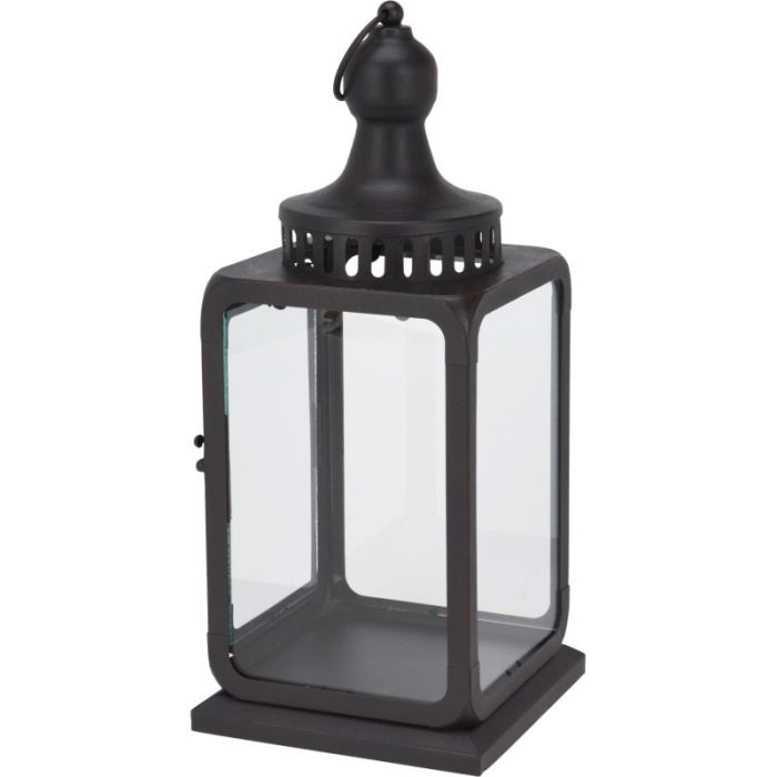 Mycket trevlig lykta i svart smide. Lika vacker inne som i ett uterum eller på en altan.