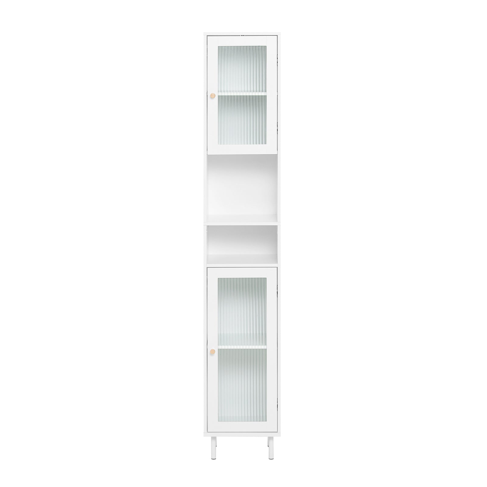 BZR167-GW Högskåp för badrum, smalt förvaringsskåp med 1 låda, 2 dörrar och 5 öppna fack, justerbara hyllor, högglans vit, 20x20x180 cm