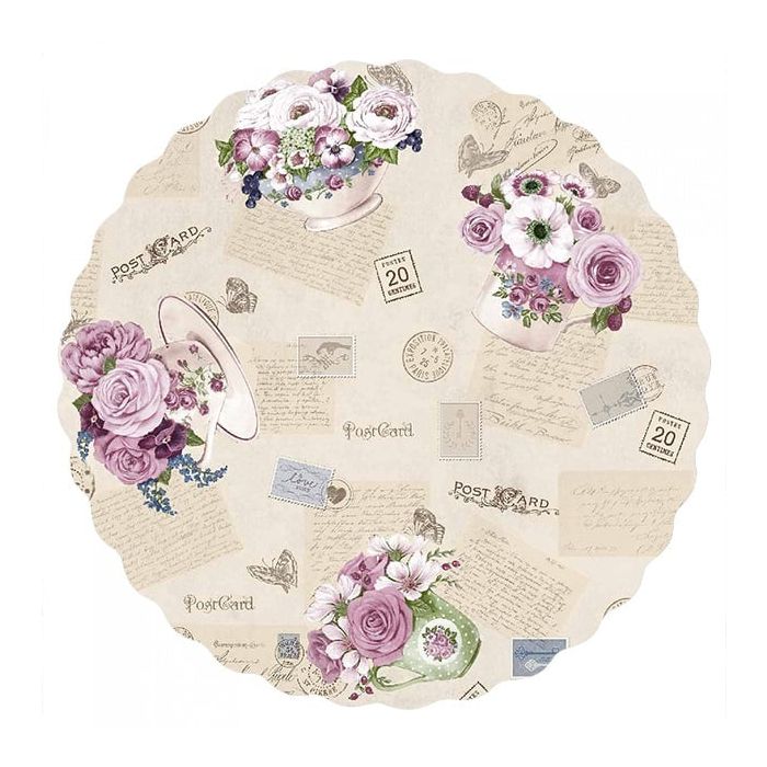 Vaxduk rund blommor/brev rosa