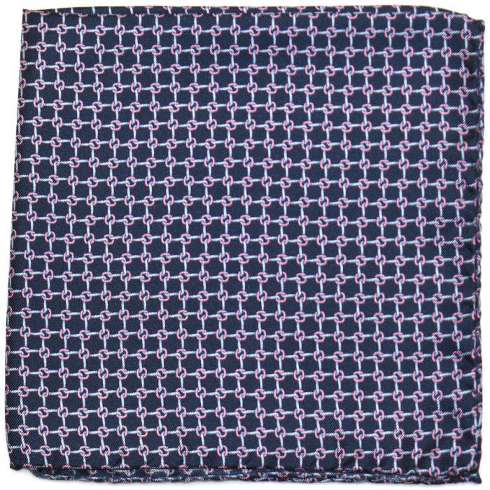 Bröstnäsduk i italiensk siden. Mönster i form av rep och knopar i rosa och ljusblå botten. Material: 100% siden.Mått: 32*32 cm.