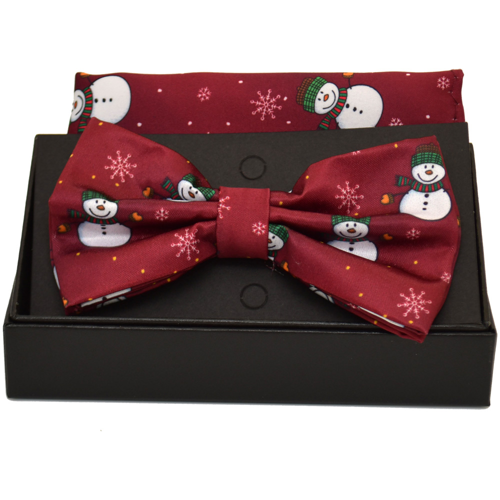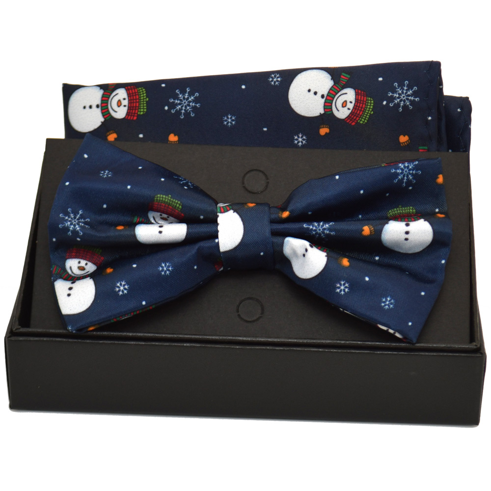 Julfluga med matchande näsduk. Snögubbar på royalblå jultemabotten.Material: 100% polyesterStorlek: Fluga 12x6.5 cm. Näsduk 25x25 cm.