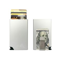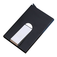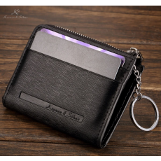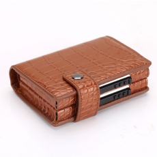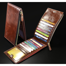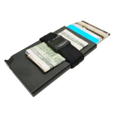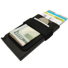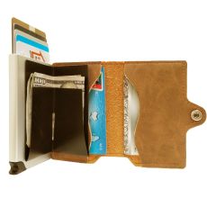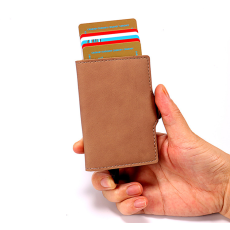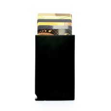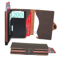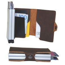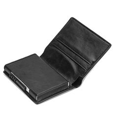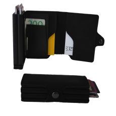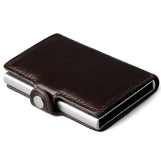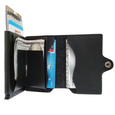 Dubbel Korthållare med smart automatisk funktion i läder - Carbon Black -med rfid blockering!