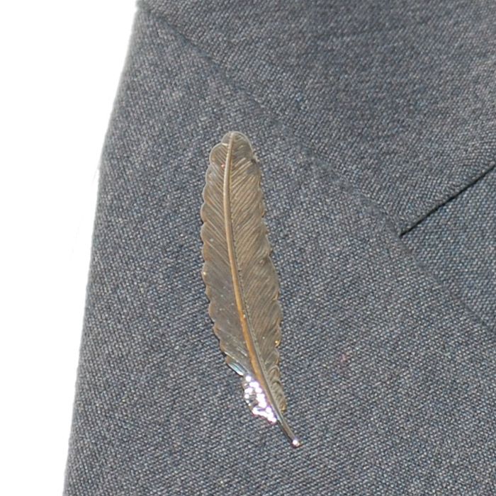 Kavajnål med silverfärgad fjäder. Storlek på fjäder 5 cm.