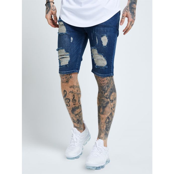 Rippade jeansshorts från Sik Silk. I en fin tvätt med hål på benen fram. Rulla upp till önskad längd. Med stretch i materialet. (185cm/83kg strl.M)