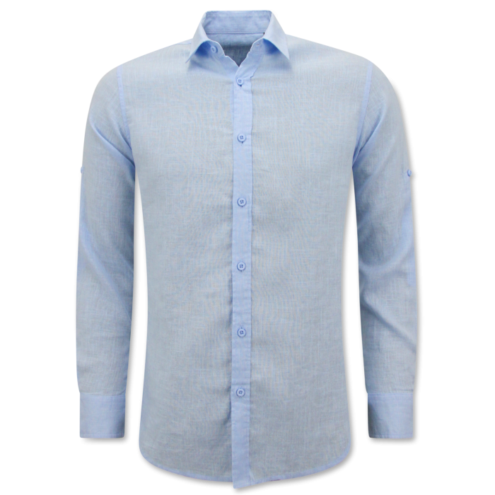 - Linne skjorta för män - Regular Fit - Casual Blanco - Ljusblå