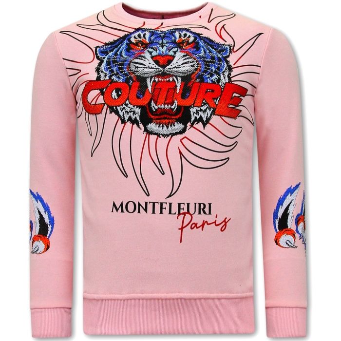 Tiger Print Långa Tröjor Kille - 3717 - Rosa
