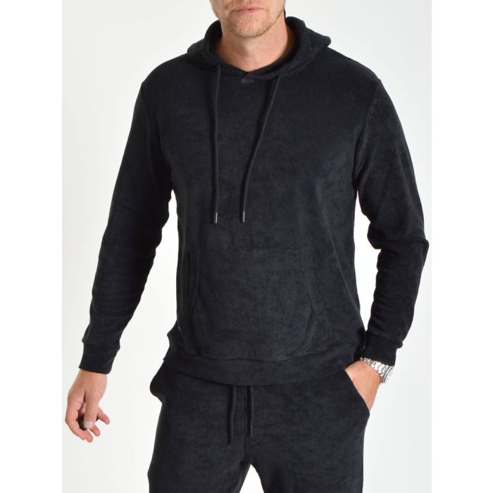 Svart hoodie från Robbie Moor. Tillverkad i skönt frottématerial. Med snören i luvan och fickor för händerna. Normala storlekar. Se matchande byxor här! (På bild 187cm/87kg och strl L)