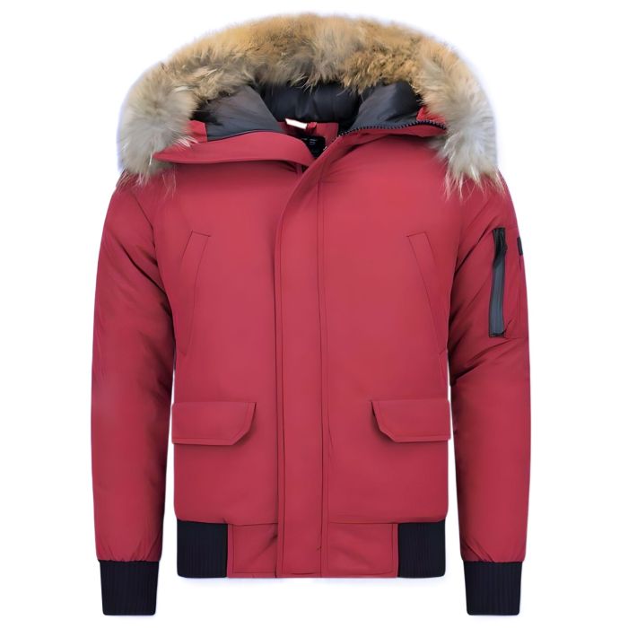 Herr Vinterjacka - Vinterjackor Äkta Pälskrage Röd