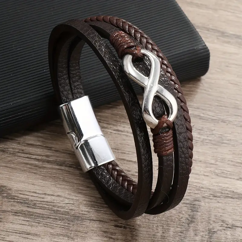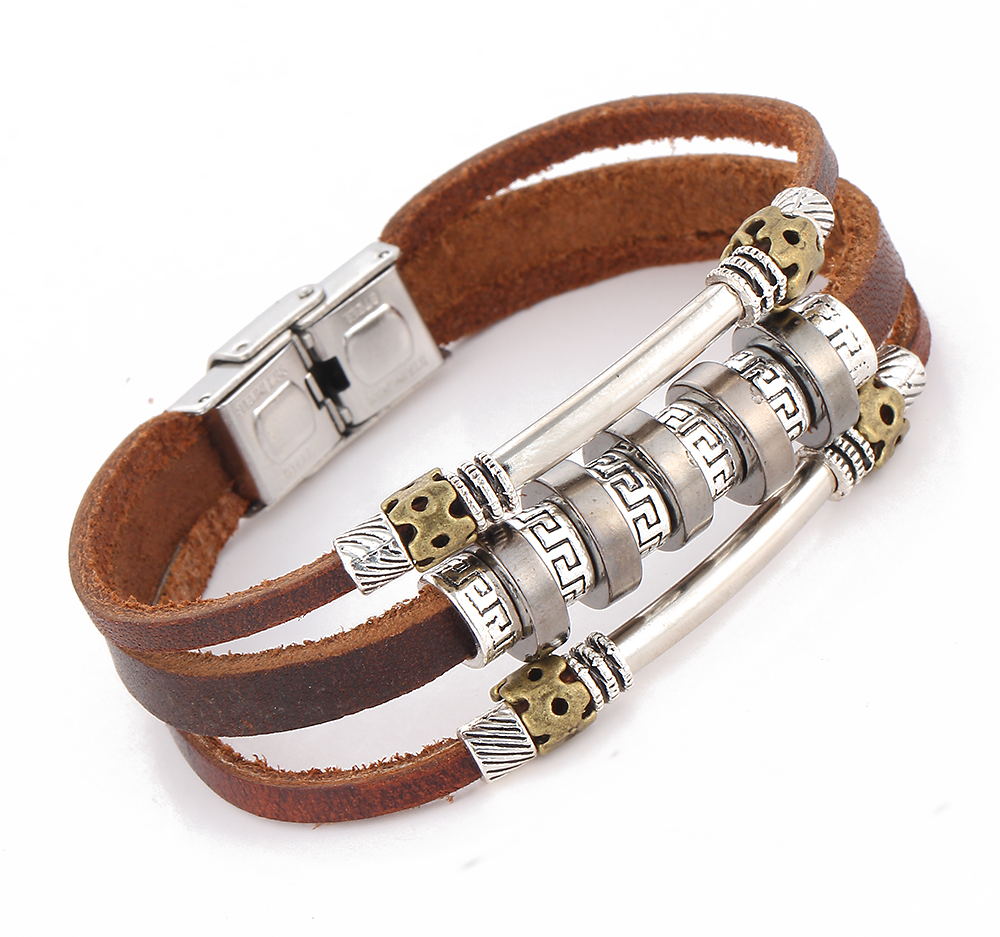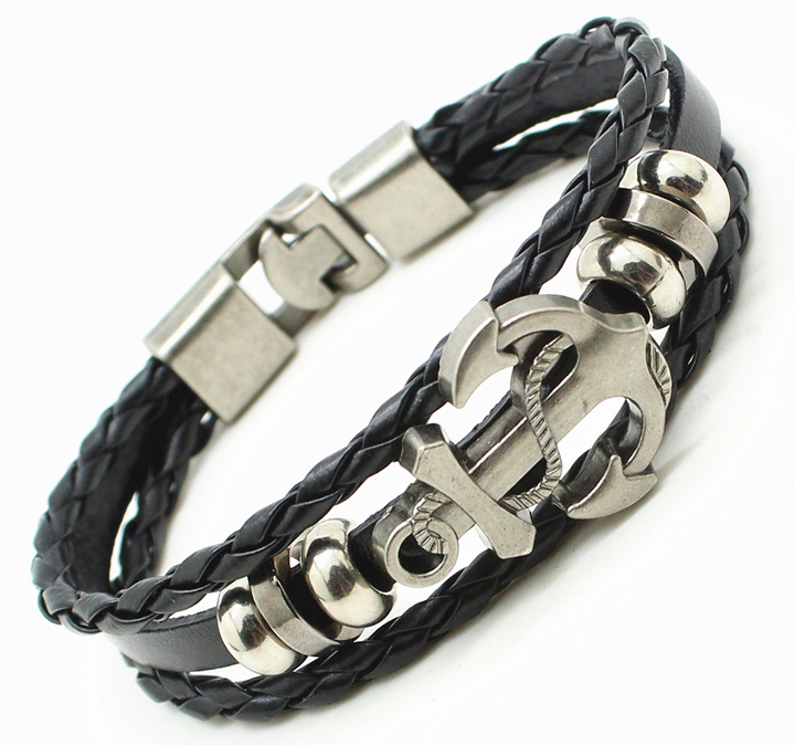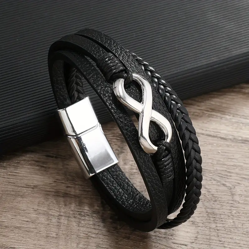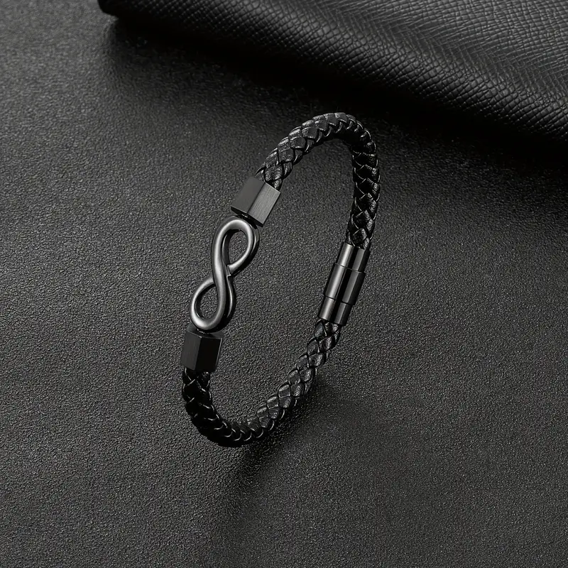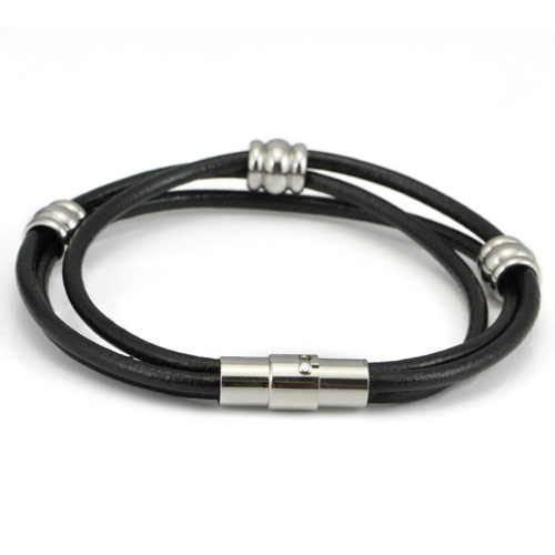 Svart läderarmband med synlig dekorativ stygnlinje och med rostfria detaljer.Material: Rostfritt stål, LäderBredd: ca 10mm