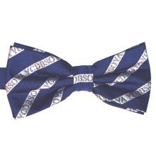Marinblå botten med julmönster i form av polkagrisar, julkulor mm. Tillverkad i vävd polyester. Bredd 12 cm, höjd 6 cm