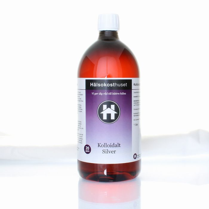Flaska 1 liter med 20 ppm silver, alltså dubbla koncentrationen jämfört med 10 ppm. 20 ppm betyder 20 miljondelar, dvs 20 mg silver per liter. Dubbelt så många silverjoner som i 10 ppm, men fortfarande lika små, storleken ändras inte. Här kan du läsa mer om innehållet >>