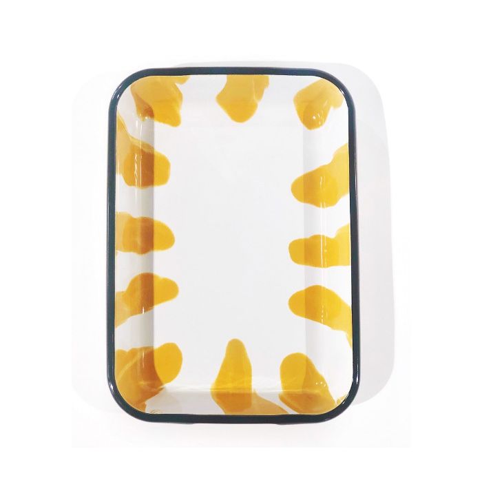 Här hittar du en servis i emalj som du kan använda året om. För en häftig dukning kan du blanda färgerna. Mezefat mini, mått 110x110x30 mm. Mezefat liten, mått 160x110x35 mm Mezefat stor, mått 210x140x37mm. Mezefat rund, mått ø120x20 mm. Emaljbricka med kant , mått 260x180x40 mm. Emaljbricka, mått 260x180x15 mm. Tillverkas i Turkiet. Emaljen är handgjord och tillverkas hantverksmässigt med omsorg och noggrannhet i Turkiet med största möjliga hänsyn till människa och miljö. Emaljskålen består av en stålkärna med två lager emalj. Emaljen består enbart av naturliga råvaror och är helt blyfri, stabil och livsmedelssäker. Varken smak eller färg kan överföras från emaljen, och det gäller även vid upphettning till mycket höga temperaturer. Emaljeringen är dessutom hållbar och tålig. Varje emaljskål är helt unik och ett hantverk, vilket i sin tur kan medföra små färgskiftningar. ? Tål Maskindisk ? Emaljskålen är ugnsfast och tål temperaturer upp till 250°c ? Ställ aldrig in emaljerade föremål i mikrovågsugn