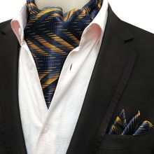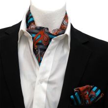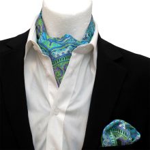 Plastrong i 100% siden. Dubbel paddel. Som bredast 15cm. Bredd runt hals 5,5 cm. Näsduk 21*21cmLoki är paisleymönstrad i silver och grått. Se bild 3 knyta plastrong.