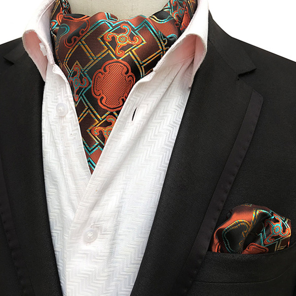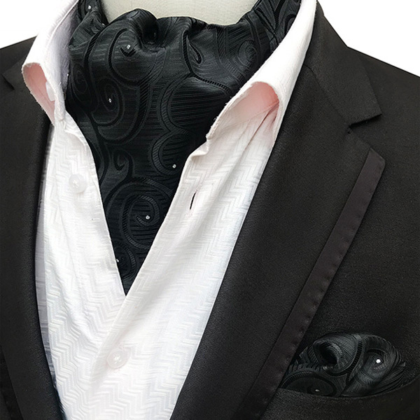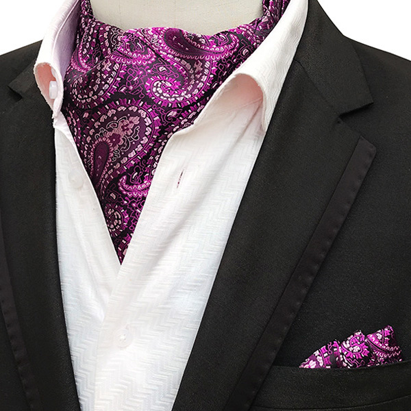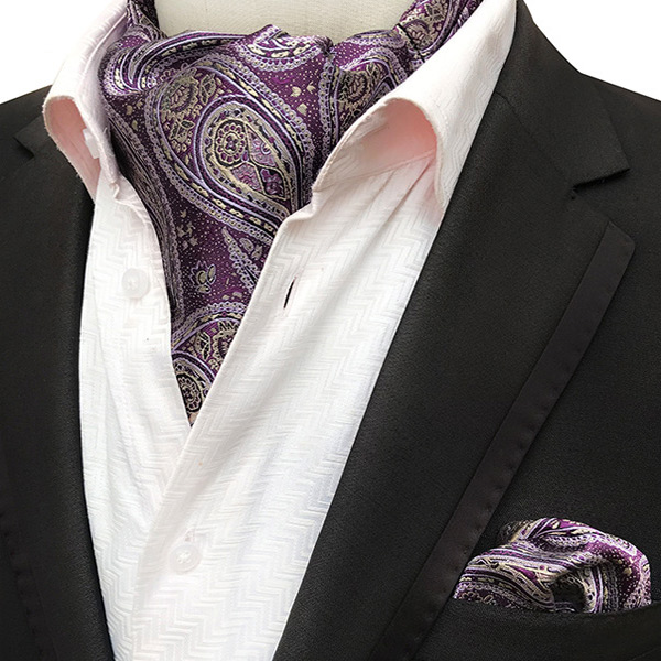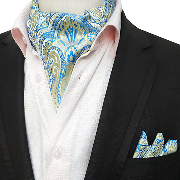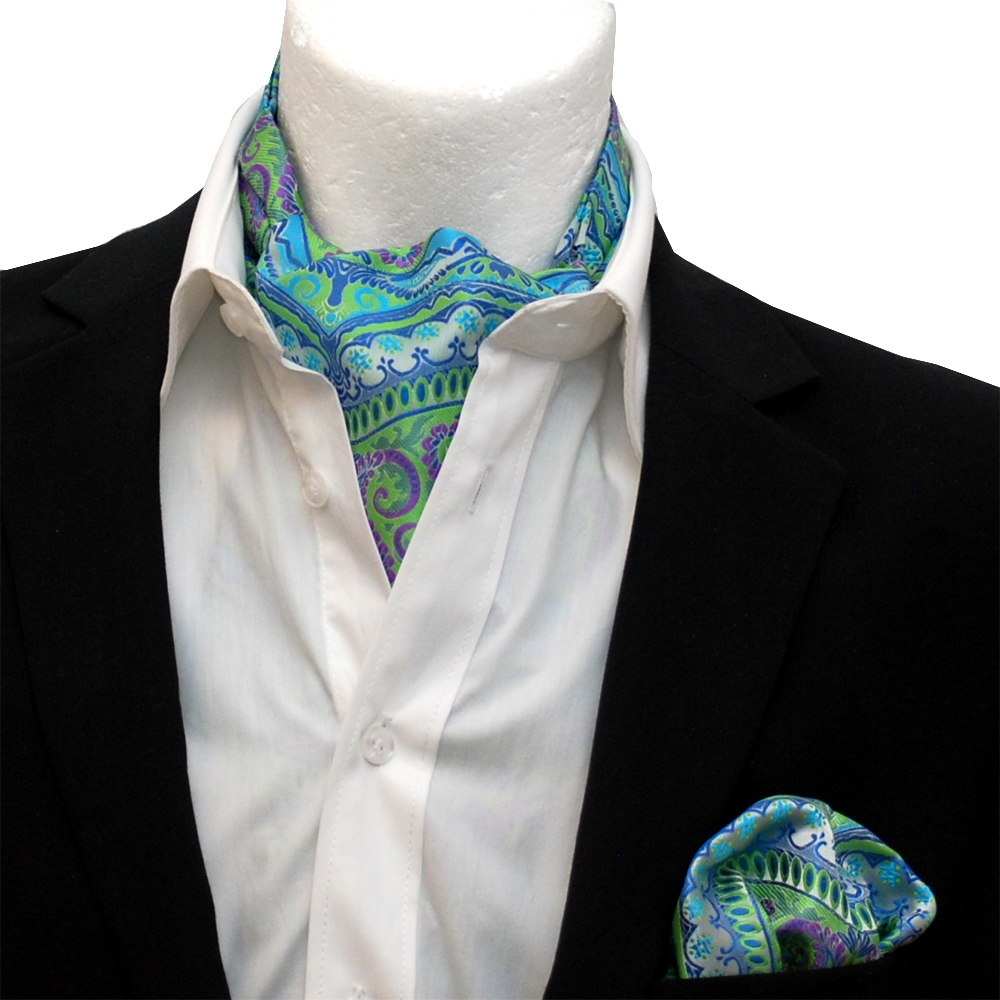 Plastrong med dubbel paddel i 100% siden. Paisleymönster i gult på ljusgul botten. Mått på plastrongen där den är som bredast 15cm. Bredd runt hals 5 cm. Näsduk 21*21cmHur knyter man plastrongen se bild 3.