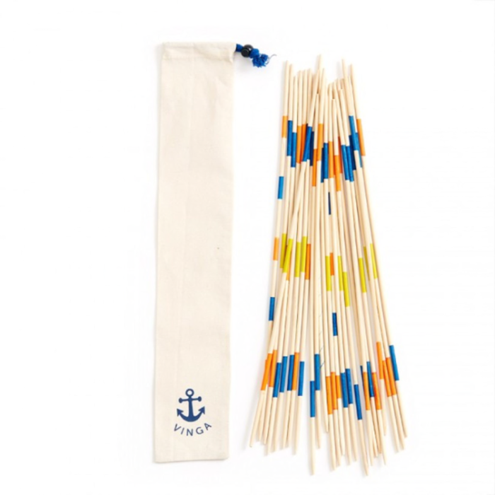 Utomhusplockepinn i ett lagom stort format. Ett roligt spel till picknicken eller grillkvällen. Kan spelas både på bordet eller på gräsmattan. Kommer förpackad i en dragskopåse av bomullscanvas.Off-white trä. 50 cm långa.