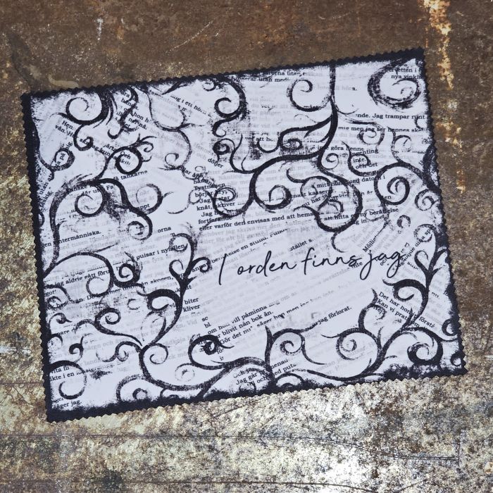 Putsduk för glasögon.100% polyester.Mått 18 x 15 cm.Från I orden finns jag.