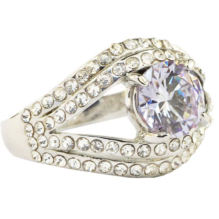 Ring med en stor och många små Cubic Zirconia och i Platinumplätering