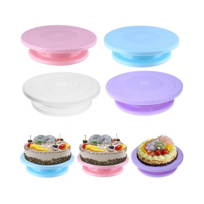 Roterande tårtfat är det perfekta redskapet för dig som vill göra egna tårtor och andra bakverk. Fungerar även som serveringsfat.Utmärkta linjer som hjälper dig att få tårtan centrerad. Står stadigt och snurrar lätt.Finns i fyra färger. Vit, blå, rosa och lila.Material - PlastStorlek - Diameter ca 28 cm och ca 7 cm hög