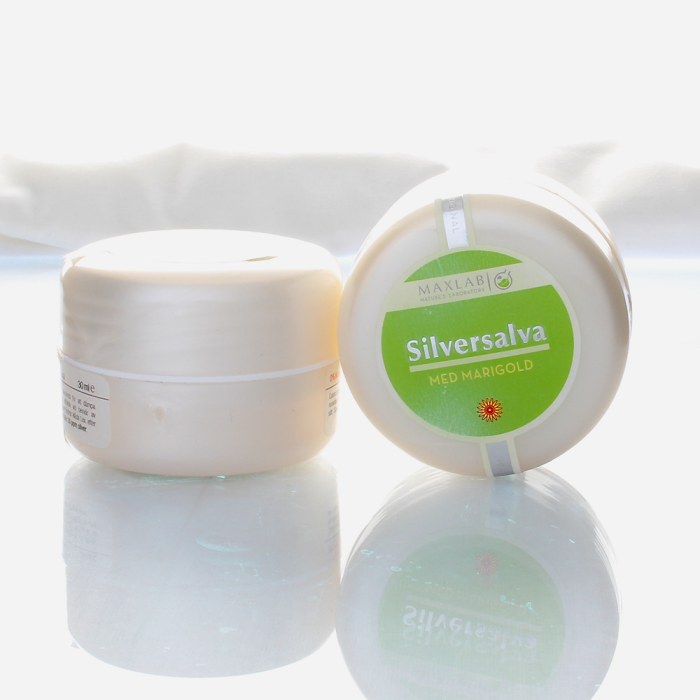 Silversalvan är örtbaserad, fri från konserveringsmedel, parabener, konstgjorda färger och dofter. Calendula-olja, allantoin, provitamin B5 i kombination med kolloidalt silver påskyndar återhämtningen av hud och slemhinnor.