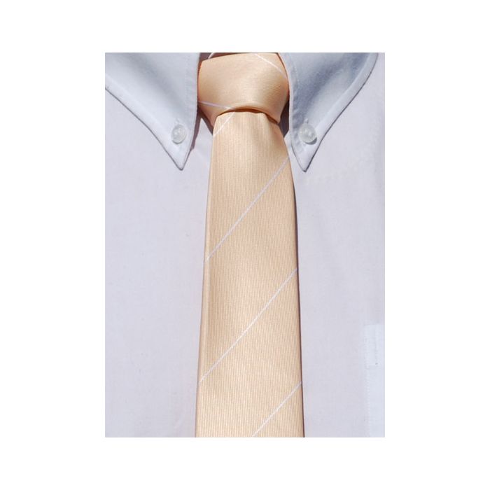 Aprikos slips med vita linjer i vävd polyester. Bredd 60 mm